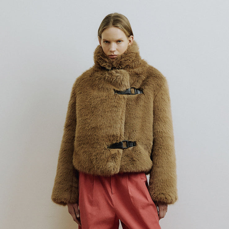 Brown & Cream Knitted Jacket Sweater with Revers – Wool Blend