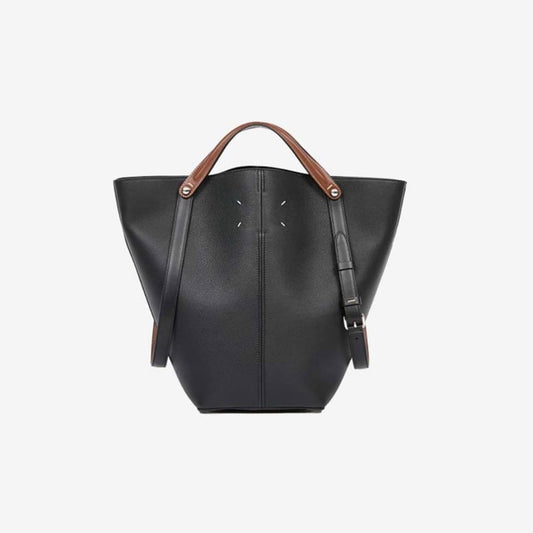 Black Leather Bucket Tote Bag with Long Straps – Timeless Luxury Handbag