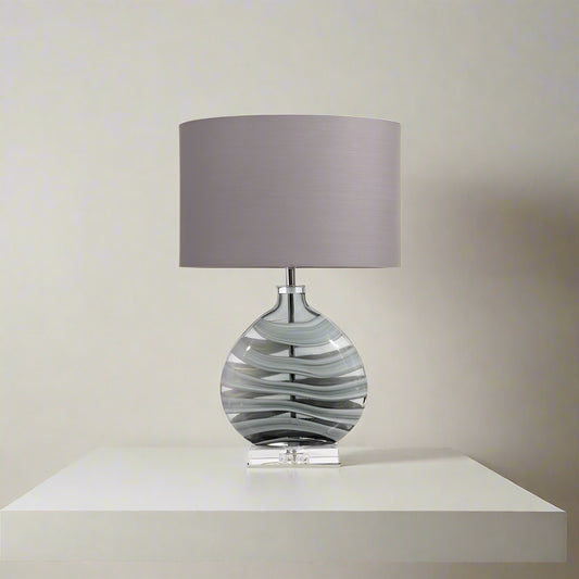 Art Glass Black Table Lamp with Grey Oval Shade