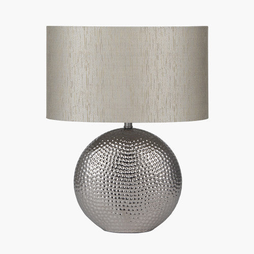 Hammered Silver Ceramic Table Lamp with Oval Shade