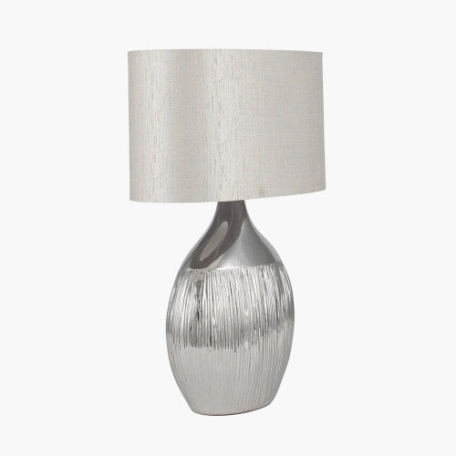 Silver Ceramic Table Lamp with Grey Oval Shade