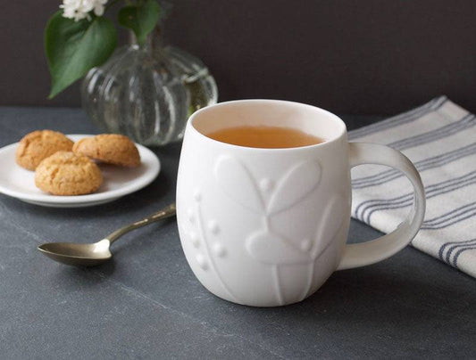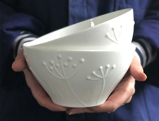 Plum Sprig Deep Bowl – White Bone China, Handmade in England