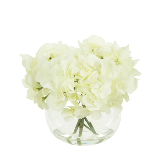 White Hydrangeas In Globe Vase