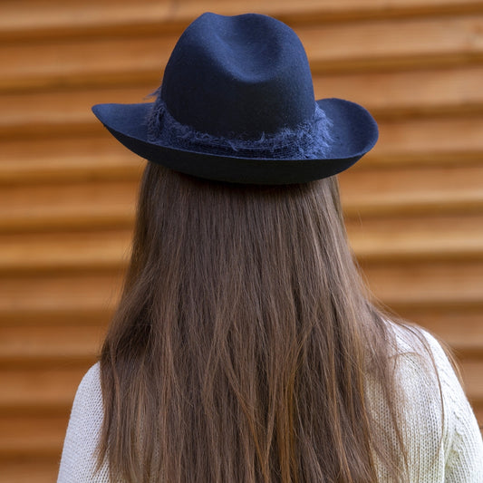 Navy Fedora Mohair Band Hat – 100% Wool, Designed in France, Made in Italy
