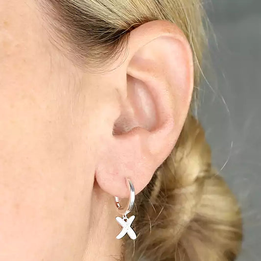 Sterling Silver Huggie Hoop Earrings with Cubic Zirconia Kiss Charm
