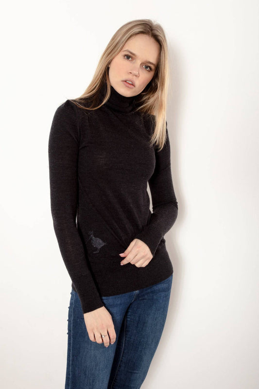 Extra Fine Merino Wool Polo Neck Jumper – Slate Grey
