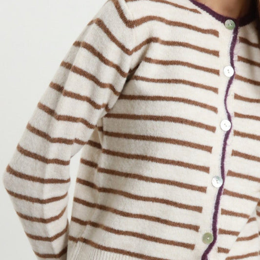 Striped Buttoned Jacket Cardigan – Cream | Wool Blend Knit
