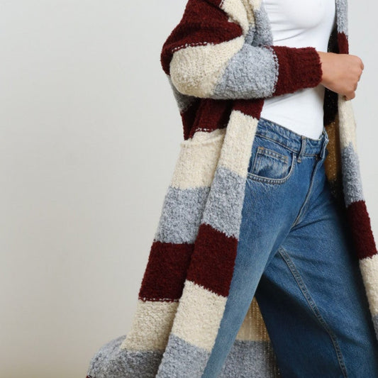 Striped Long Cardigan – Wool & Alpaca Blend Knit