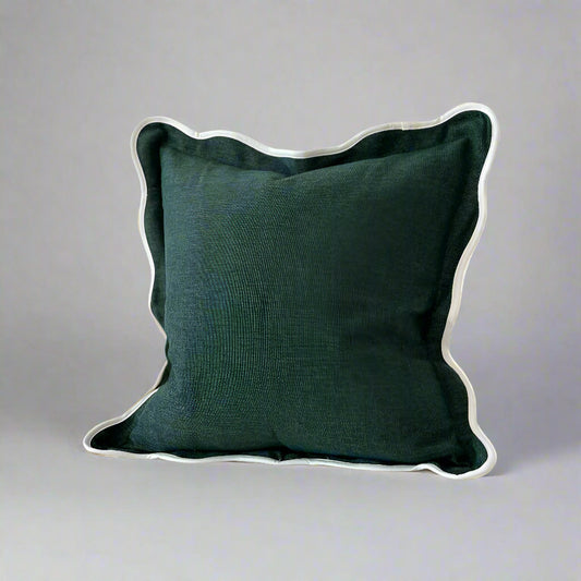 Forest Green Scallop Edged Cushion with Feather Pad – 45 x 45cm
