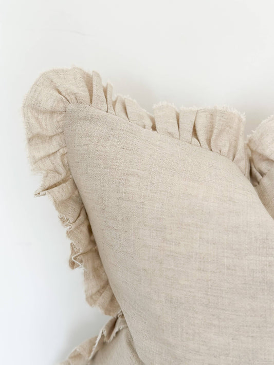 Ruffled Linen Cushion – Sand | 45x45cm | Feather Filled