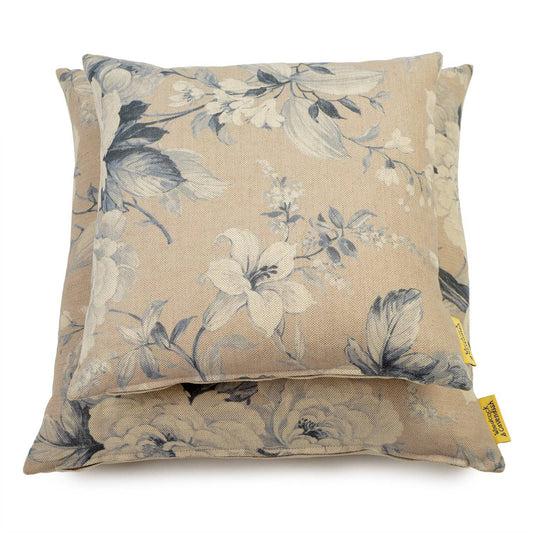 Blue Floral Linen Cushion by Woodcock & Cavendish