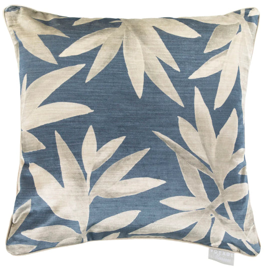 Blue Floral Velvet Cushion with Duck Feather Pad – 50 x 50cm | Made in the UK