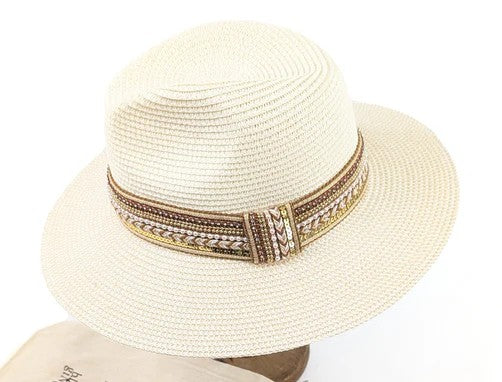 Cream Jewelled Band Foldable Panama Hat | 57 cm | Packable Eco‑Friendly Sun Hat