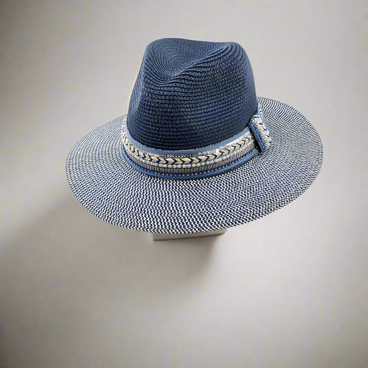 Jewelled‑Band Foldable Panama Hat – Navy Blue (57 cm) | Packable, Eco‑Friendly Sun Hat