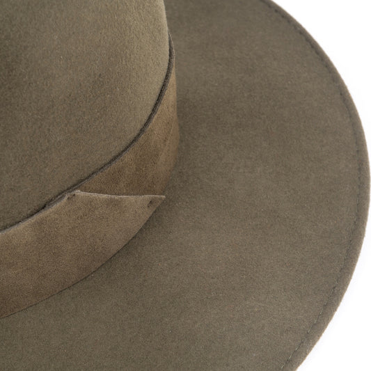 Wool Wide Brim Olive Hat with Large Suede Leather Band – Stylish & Durable
