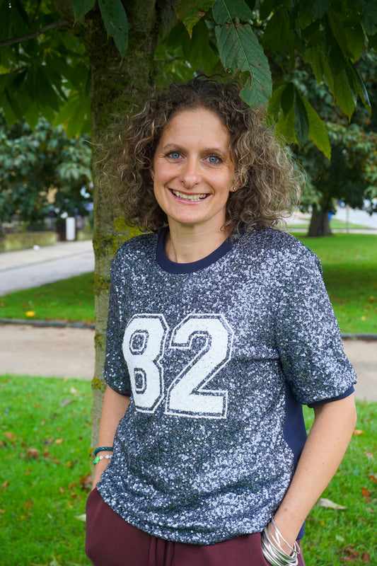 Short-Sleeved Sequin T-Shirt – Sparkling Party Top with Crew Neck