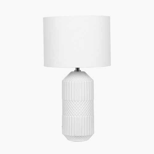 Tall White Ceramic Table Lamp – Textured Tactile Design