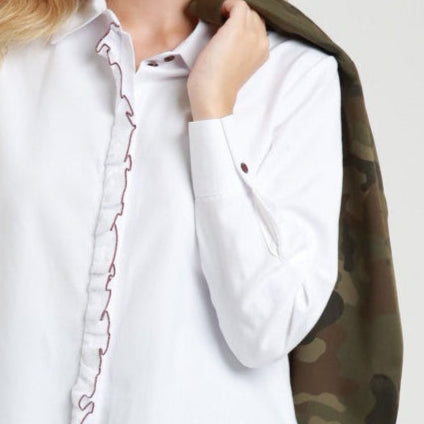 Oxford Shirt with Frill & Burgundy Piping | Elegant Everyday Shirt