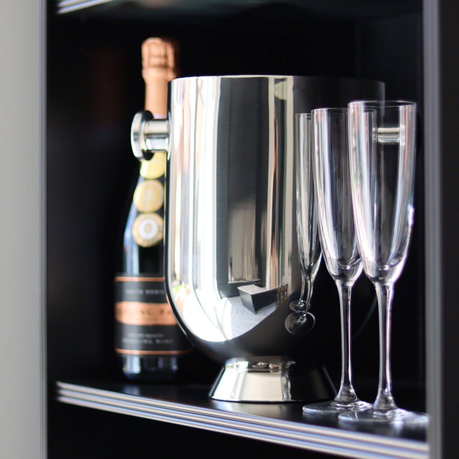 More than a mere champagne cooler, this champagne Bucket is a magnetic centerpiece that commands attention with its understated allure. Whether gracing a vibrant cocktail party or an intimate evening, this design masterpiece invites admiration through its graceful, beguiling presence. Perfectly sized to cradle one champagne bottle or two sparkling wine bottles.